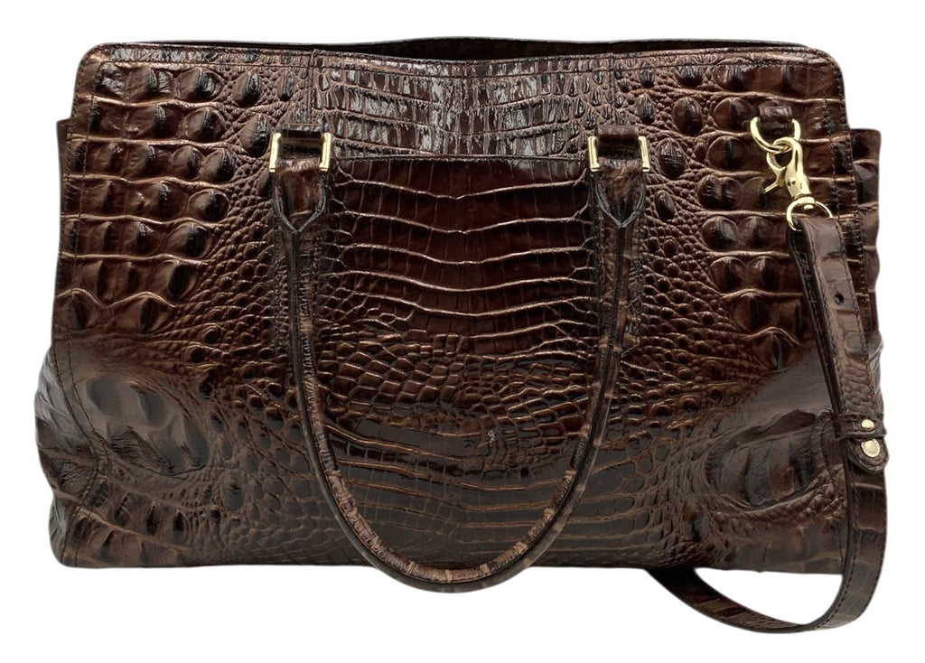 BRAHMIN Brown Embossed Leather Duxbury Weekender Bag. Some pen marks on interior lining.
