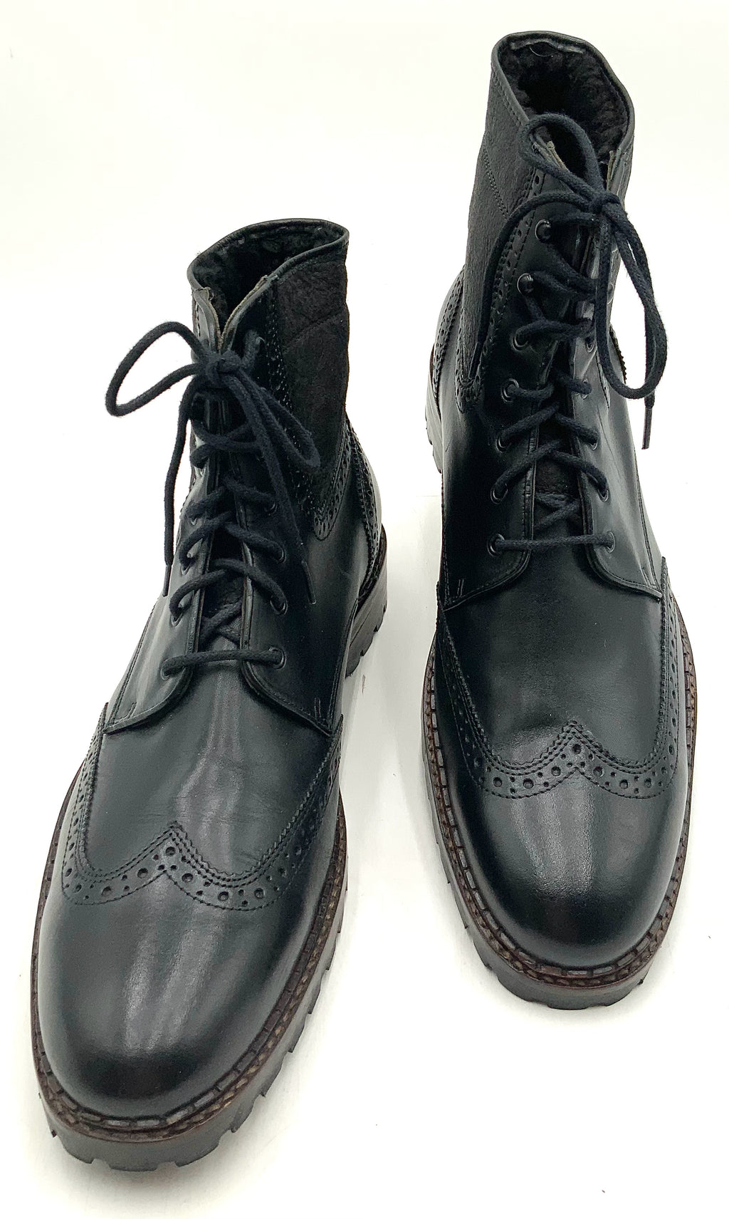 JOHNSTON & MURPHY Black Perf Leather Shearling Lined Lace up Boots 11