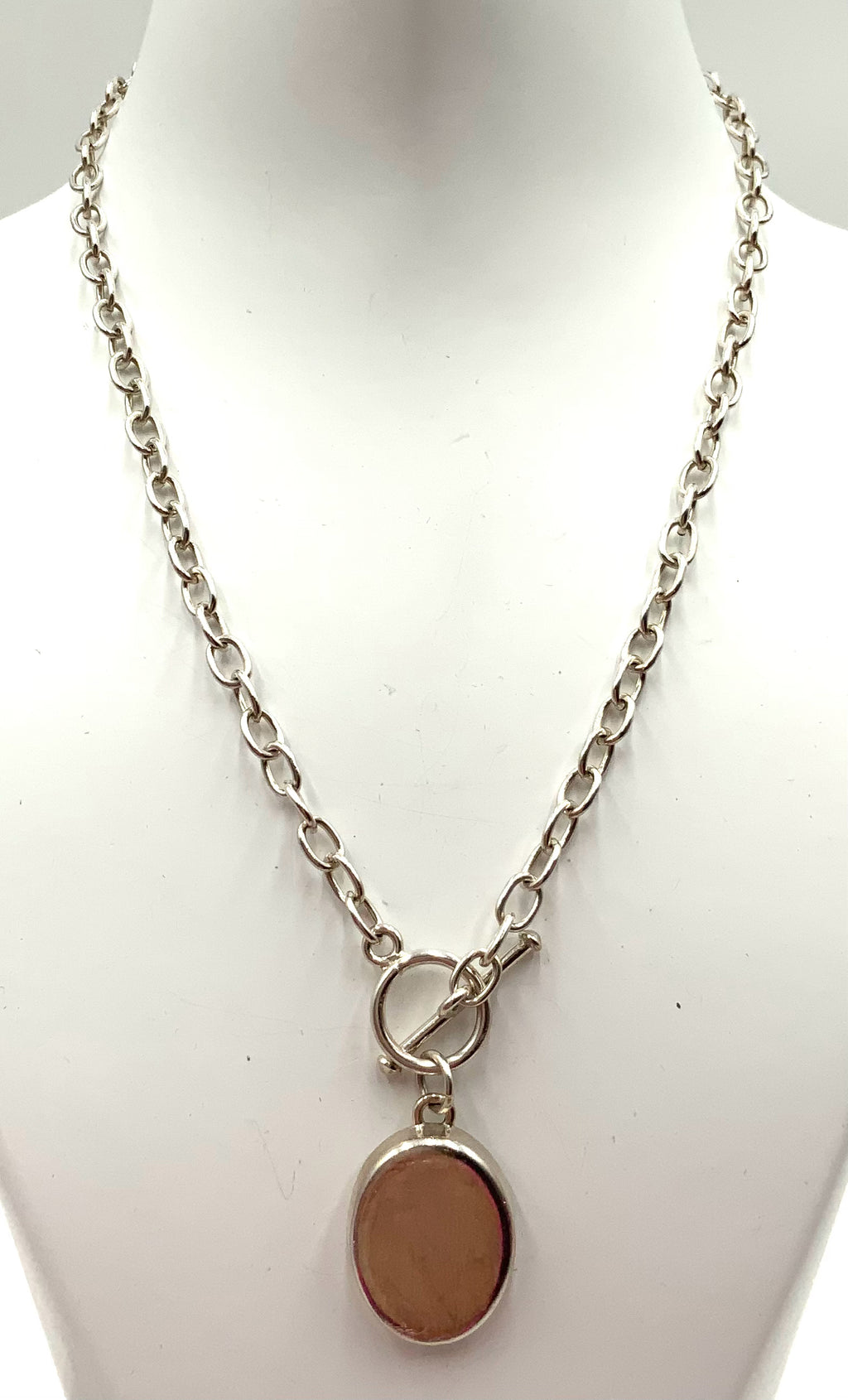 Necklace, Sterling. Toggle Clasp, 16.5"l Pendant, Sterling, .625"wx1.125"l. Marked ATI 925 MEXICO. 18.4g.