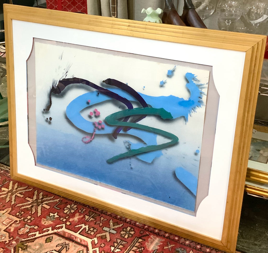 Abstract on Paper, Original, Vintage, Gold Frame, 43"wx34"h