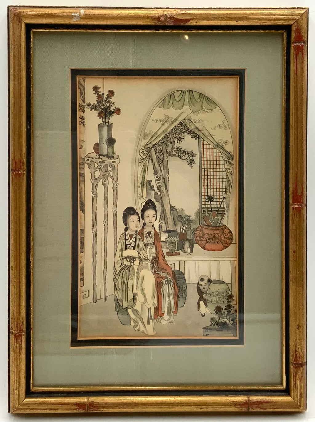 Prints, Pair, Asian, Gold Bamboo Frames, 8.5"wx11.5"h
