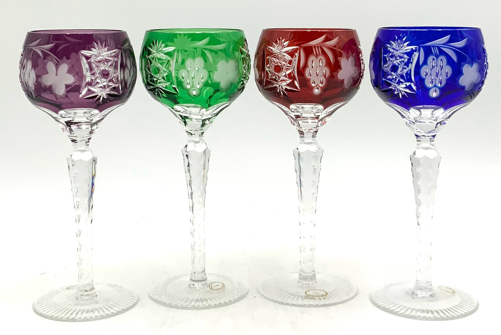 Set/4 Hungarian Multicolor Crystal Wine Goblets