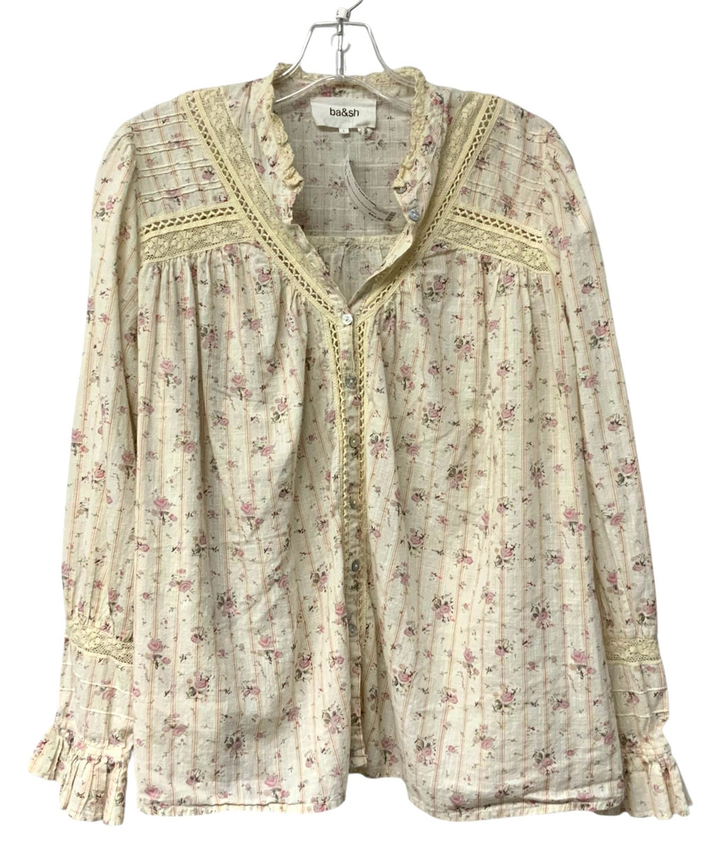BA&SH Cream/Pink Floral w/Lace Detail L/S B/D Top