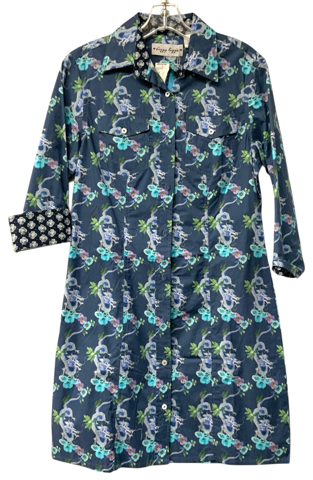 DIZZY LIZZIE Blue/Lavender/Aqua Floral 3/4 Sleeve B/D Dress