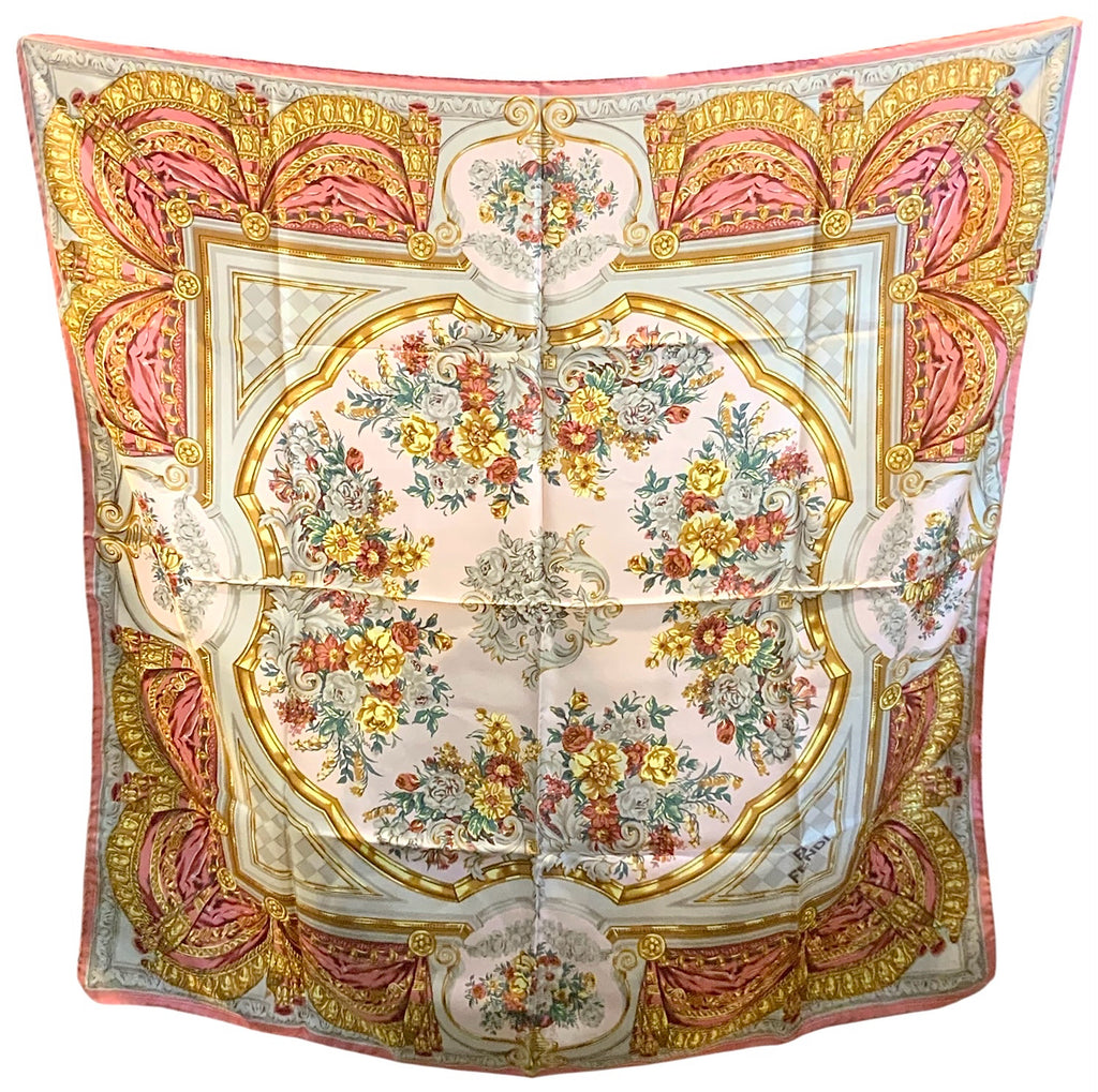 FENDI Pink Gold Multi Floral Silk Valance Motif Scarf