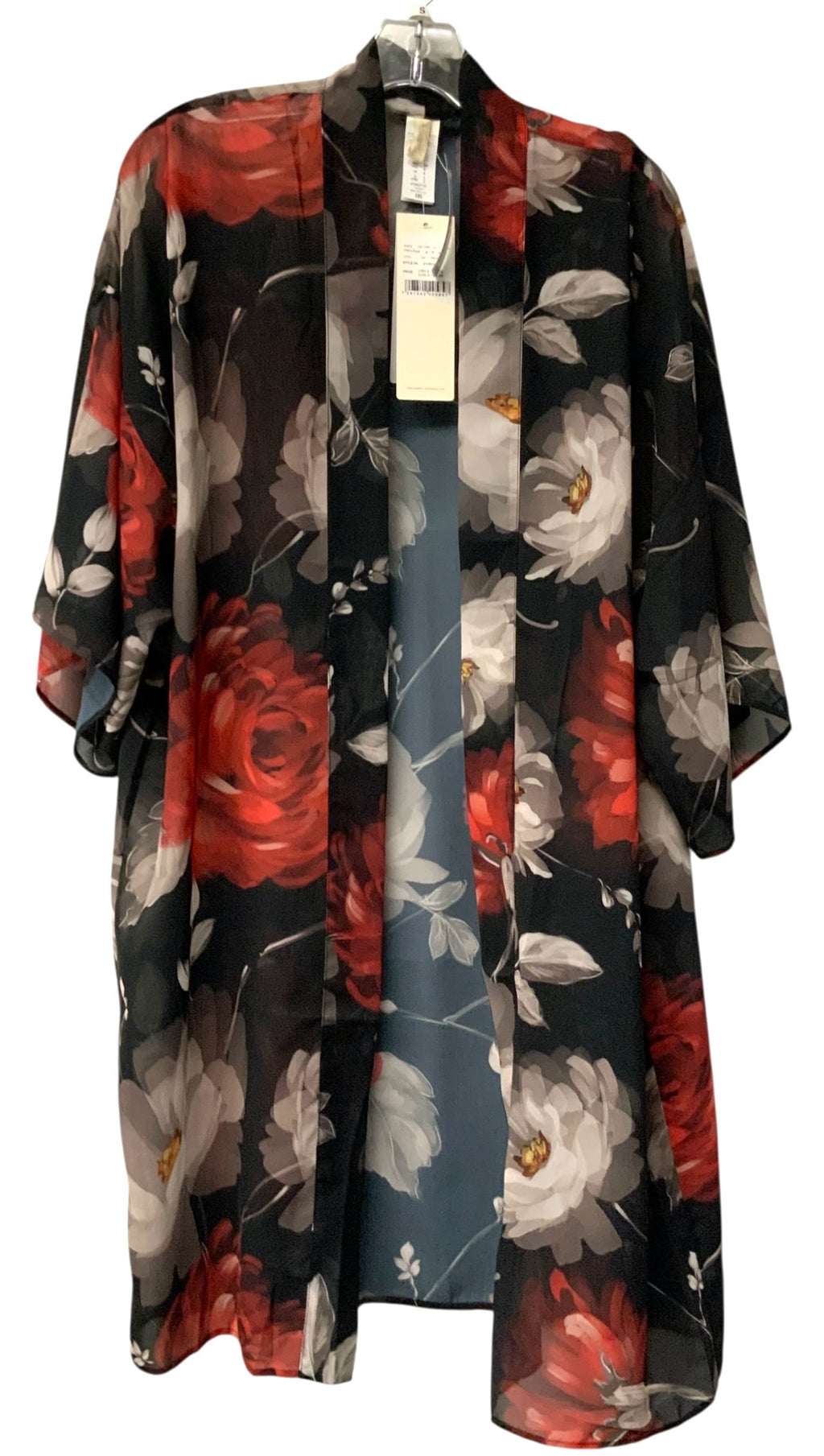 GOTTEX Black/Red/Grey Floral Kimono Sleeve Open Duster