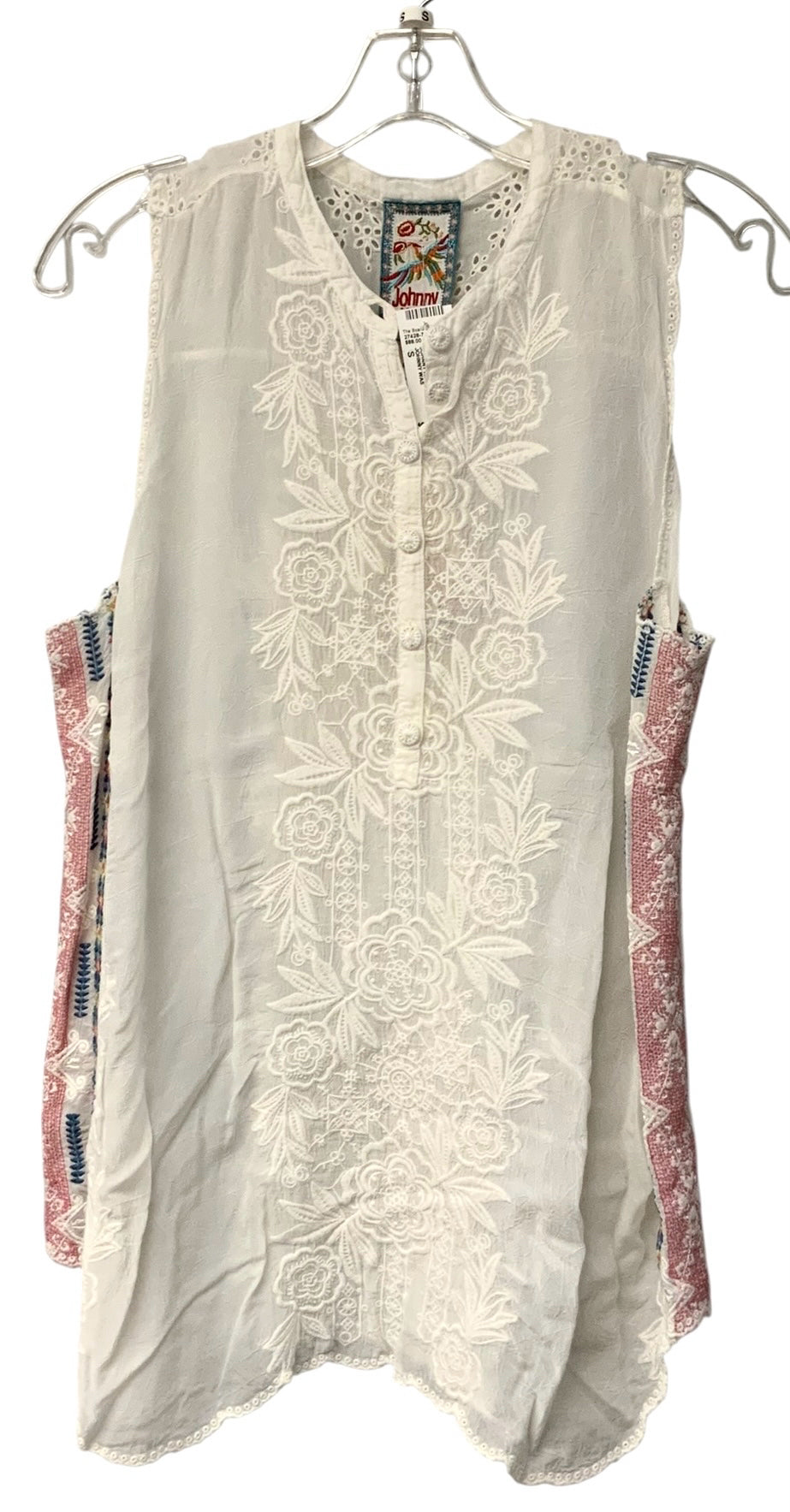JOHNNY WAS White w/Multi Floral Embroid "Rosslyn" S/S Top