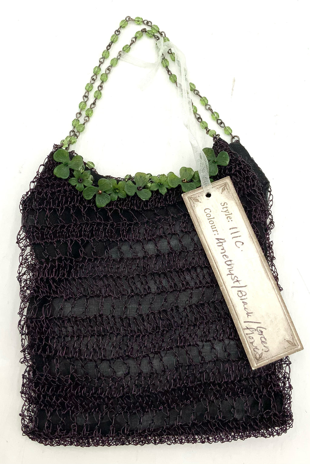 LISA TOLAND Purple Wire Crochet Green Floral Beaded Chain Strap Mini Bag