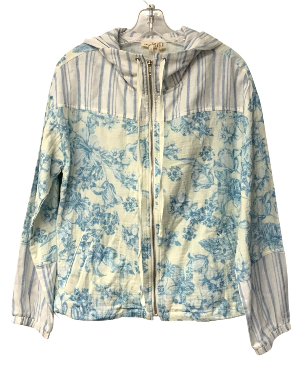 MYSTREE Blue/White Stripe & Floral L/S Hooded Zip Jacket