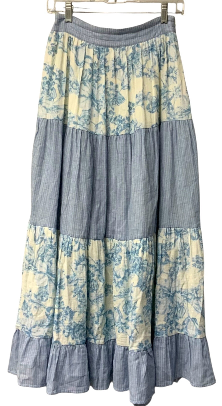MYSTREE Blue/White Stripe & Floral Tiered Skirt