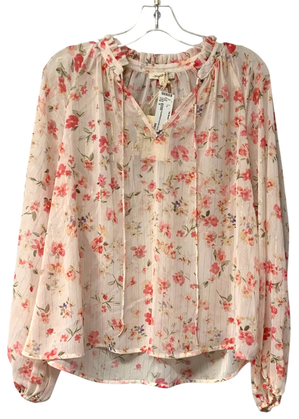 MYSTREE Pink/White/Lavender Floral Tie Neck L/S Top