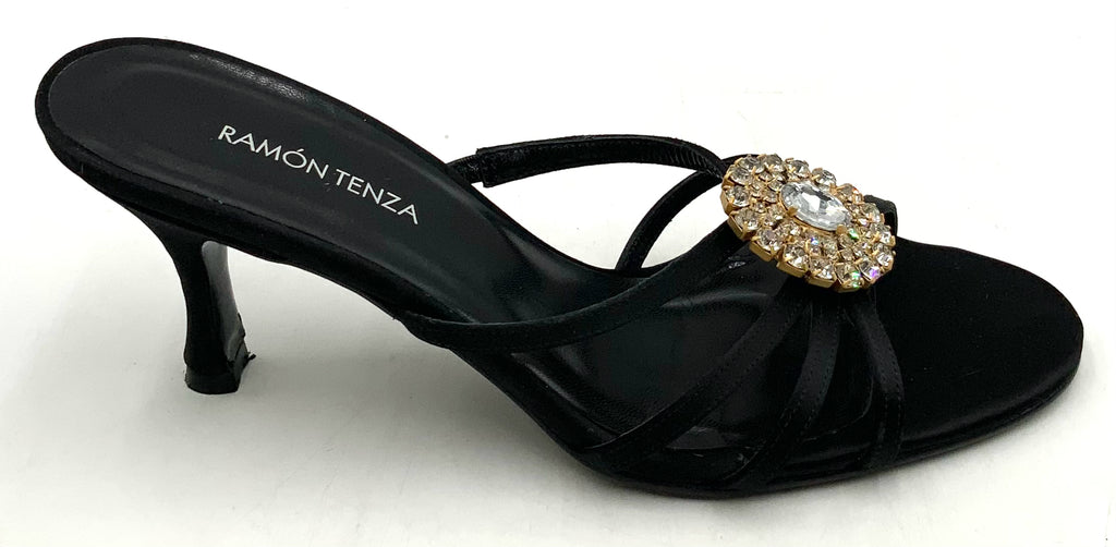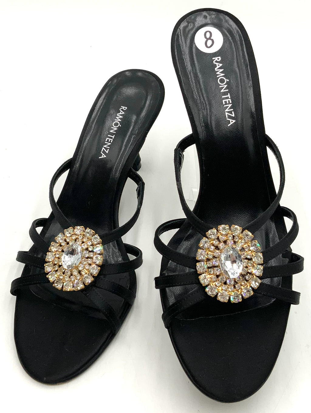 RAMON TENZA Black Satin Swarovski Crystal H/H Sandals 8