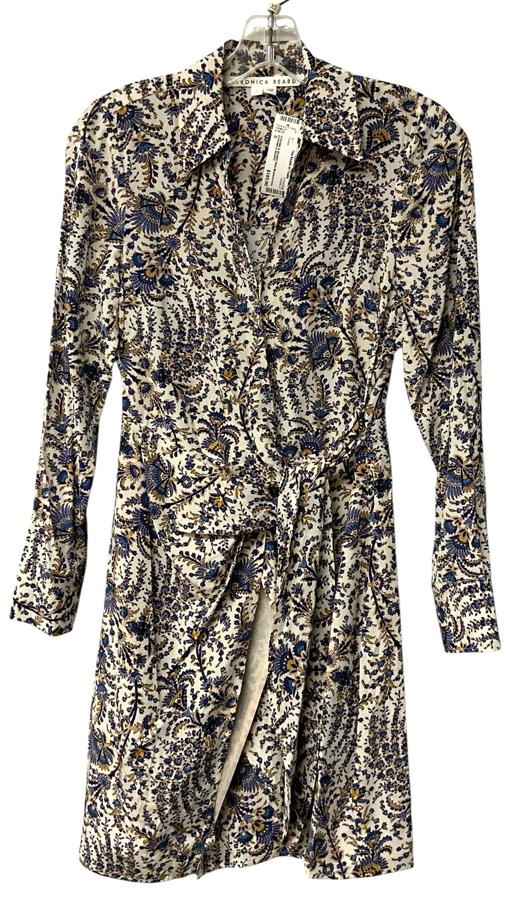 VERONICA BEARD Blue Mustard Floral Silk Tie Front Lavella L/S Dress