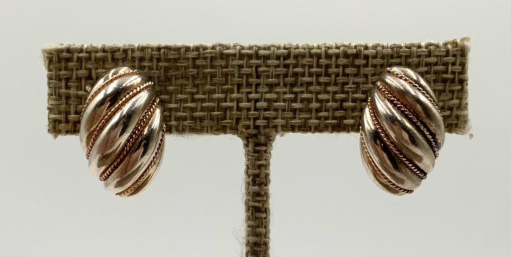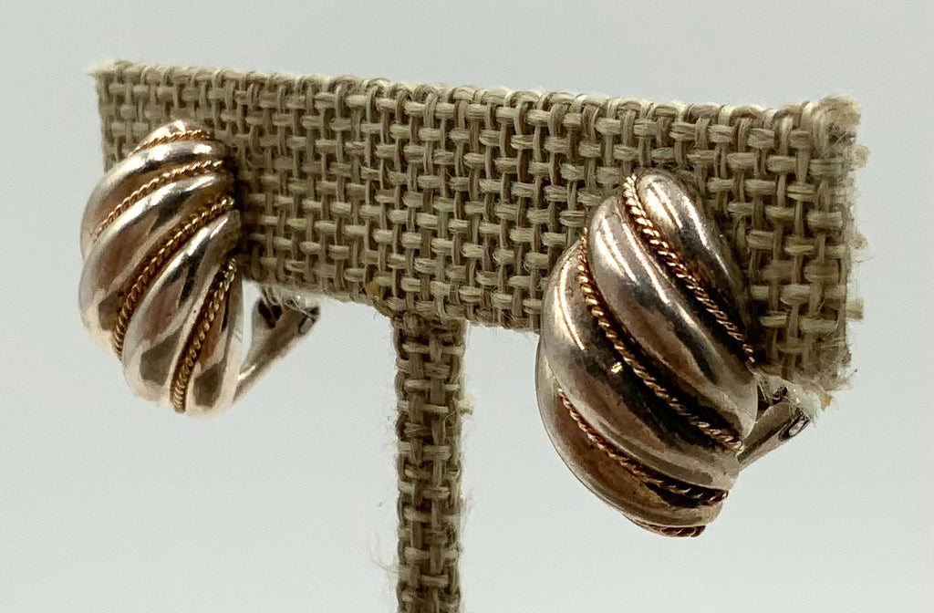 Earrings, 14kt Gold, Sterling, Omega Clip-On Backs. .5"wx.75"l. Indiscernible Mark, Test as 14kt Gold & Sterling. 9g.