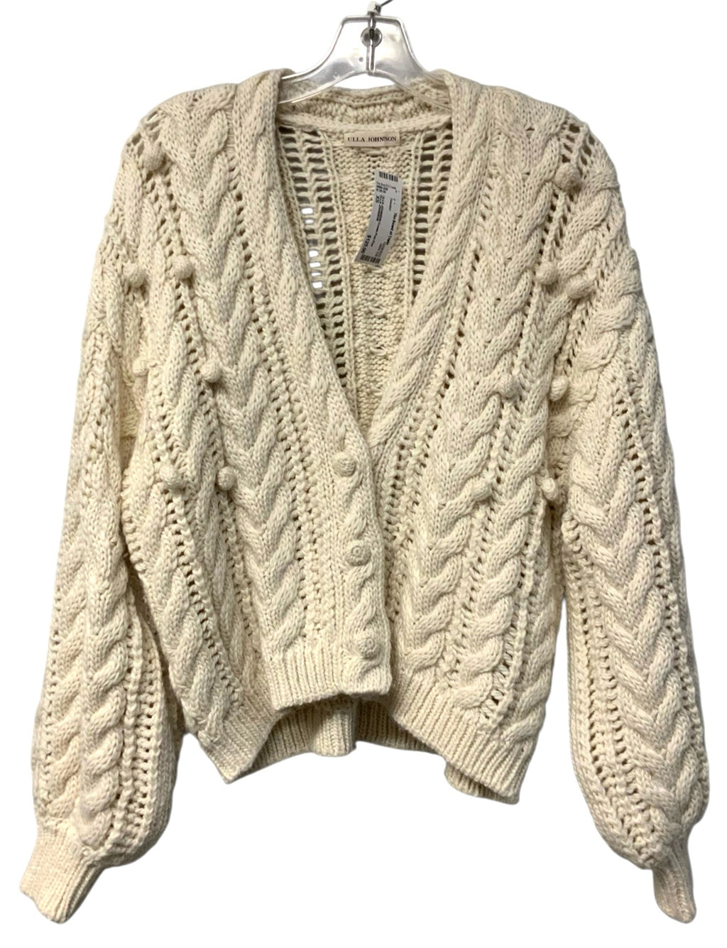 ULLA JOHNSON Cream Pom Pom Merino Wool/Alpaca L/S B/D Sweater