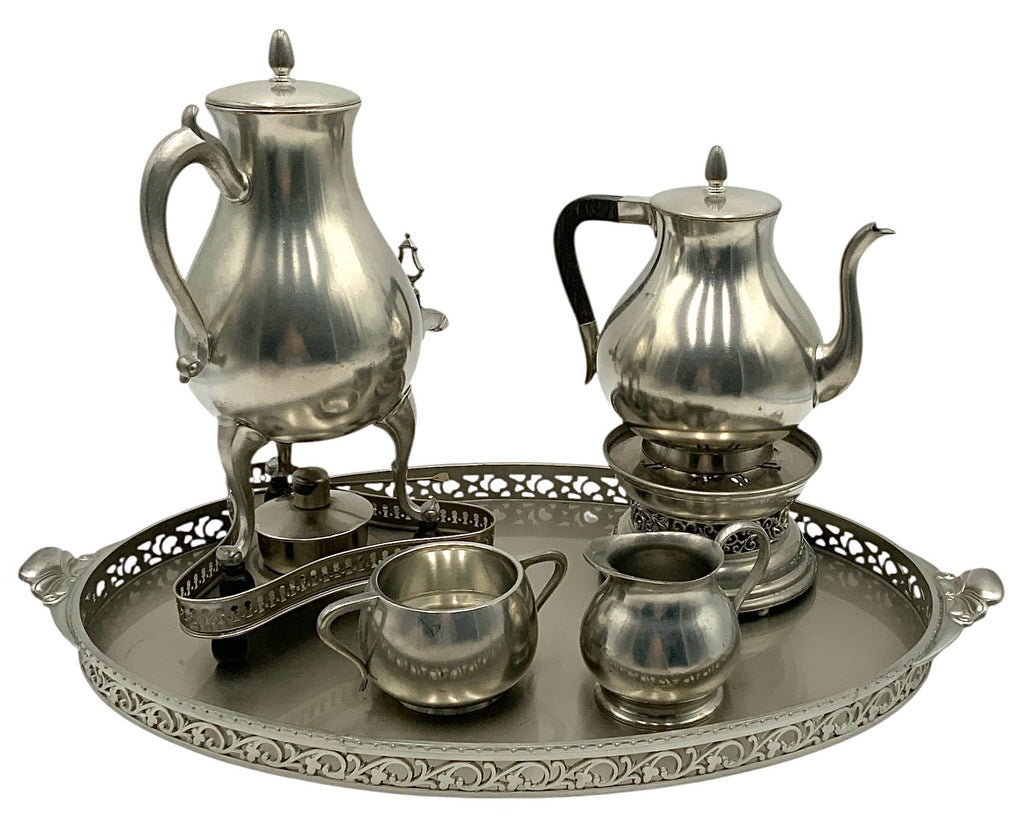 Coffee/Tea Service, Pewter, 6pcs, With Warmers, 21"wx13"d