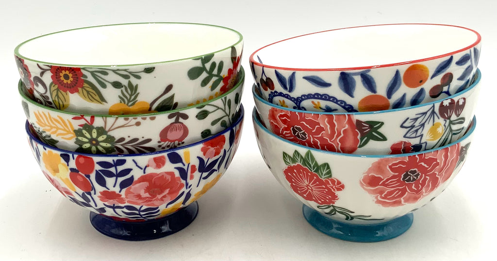 Fruit Bowls, Set/6, Ceramic, Bright Floral Design, 5.5"rnd (1 of 2 Sets Consigned)