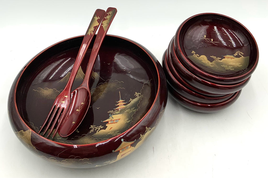 Salad Bowl Set, 9pc, Japanese, Vintage, Lacquer, 10.5"rnd