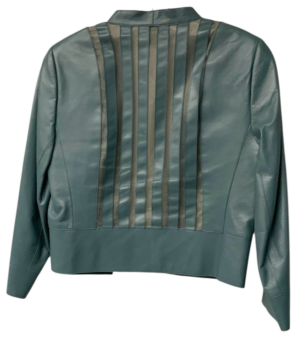 AKRIS Teal Green Leather Silk Netted Panel Structured Leather Jacket