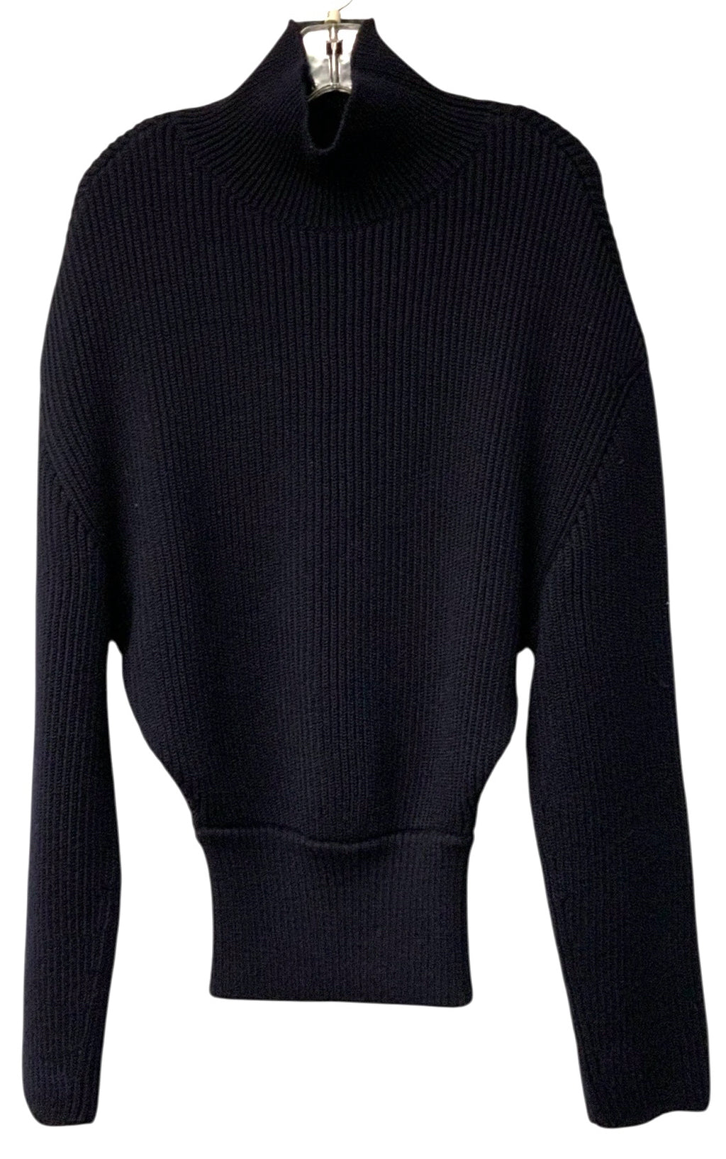Balenciaga Italy Navy Ribbed Knit Mock Neck Sweater