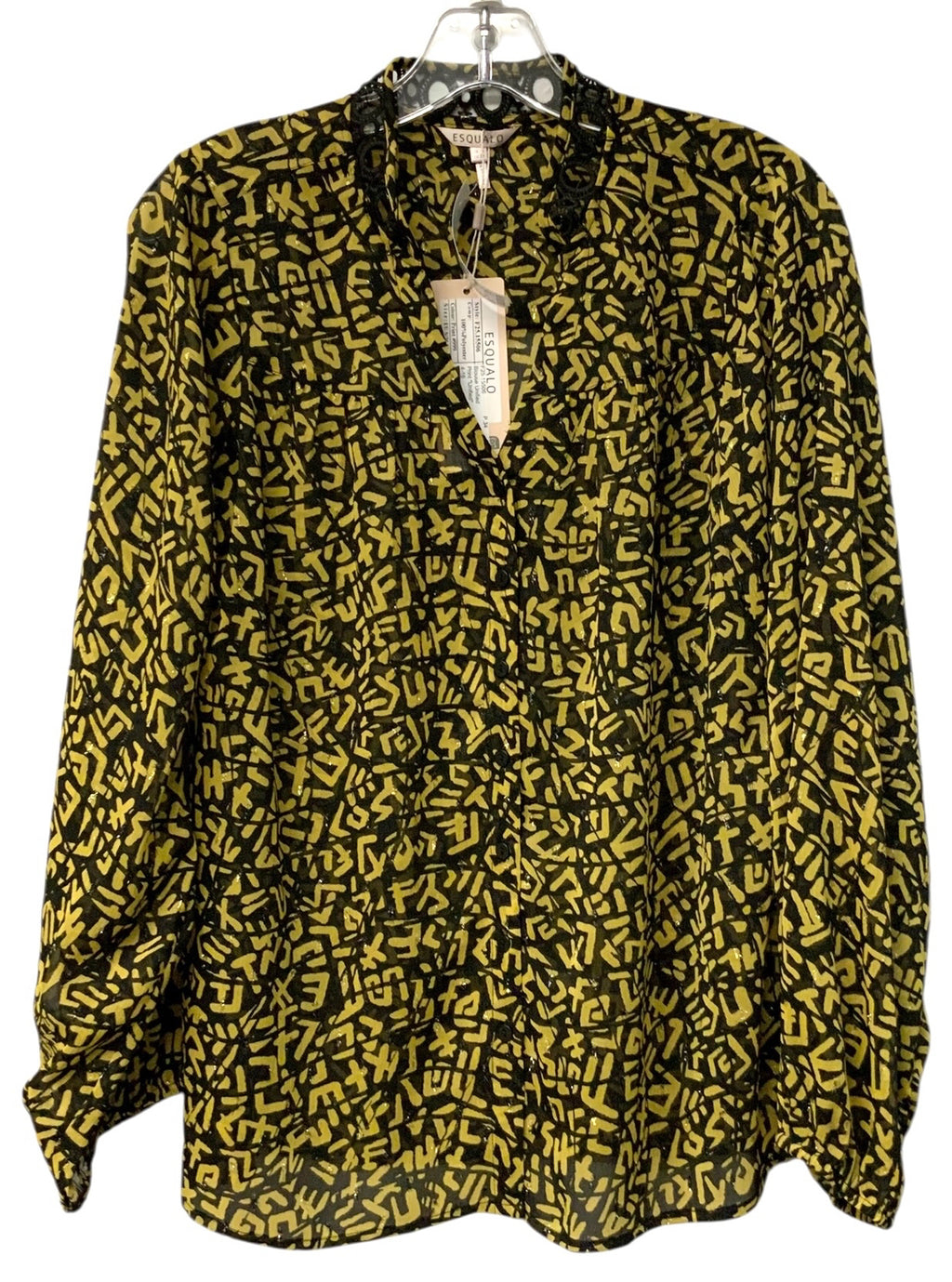 ESQUALO Black/Yellow Abstract L/S B/D Top