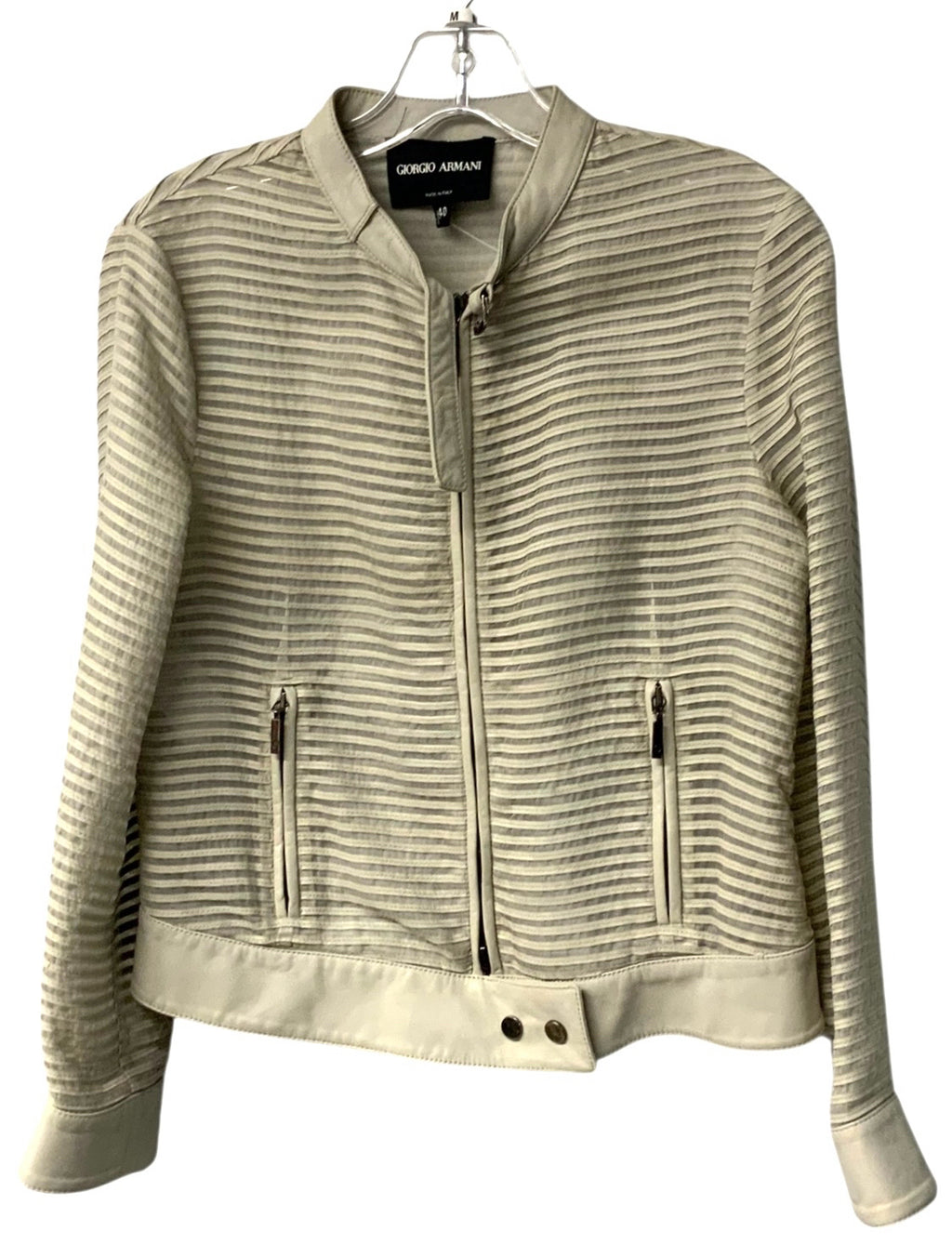 GIORGIO ARMANI Putty Lamb Leather Silk Panel Jacket