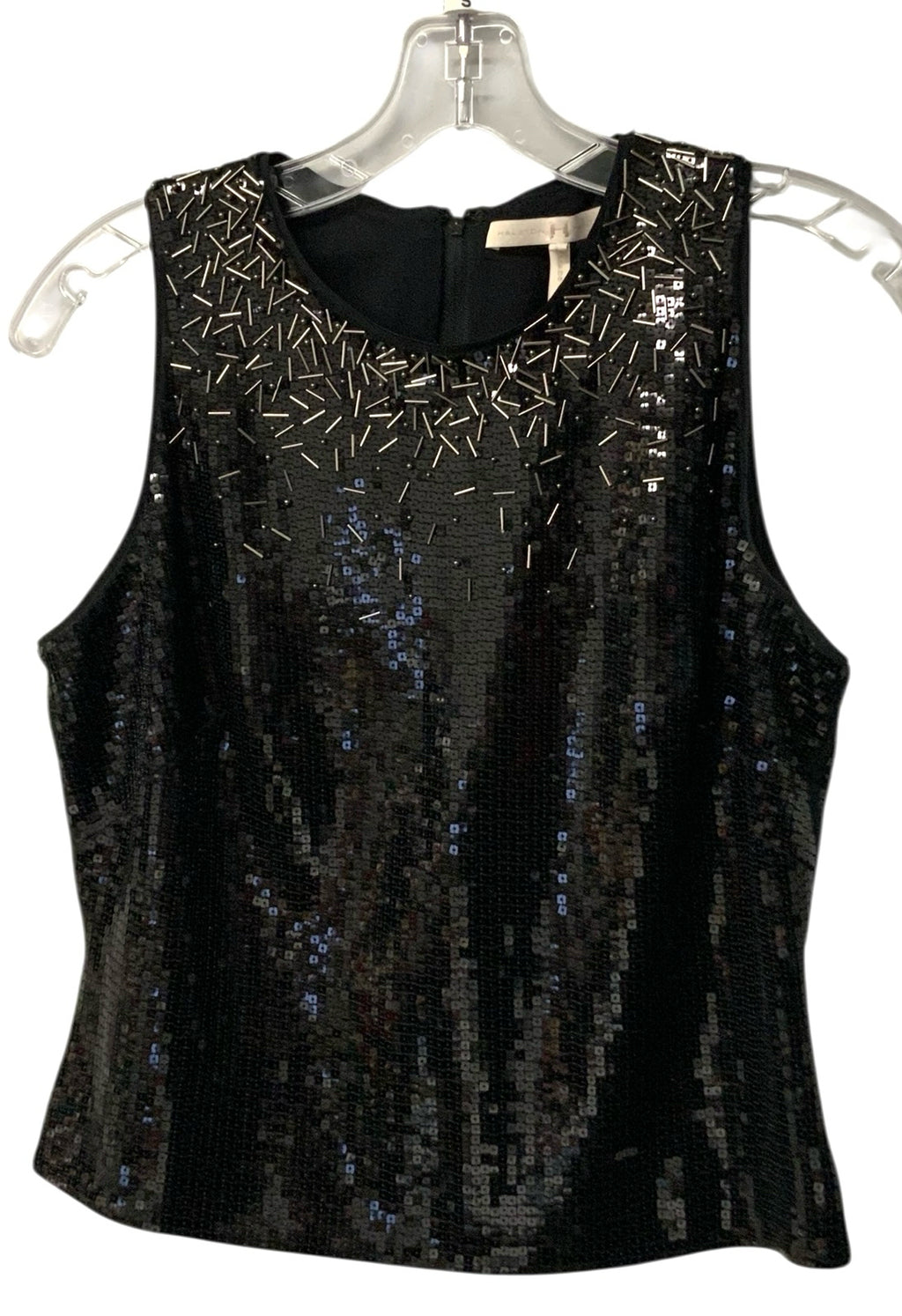 HALSTON Black Sequin Silver Tube Bead S/L Shell