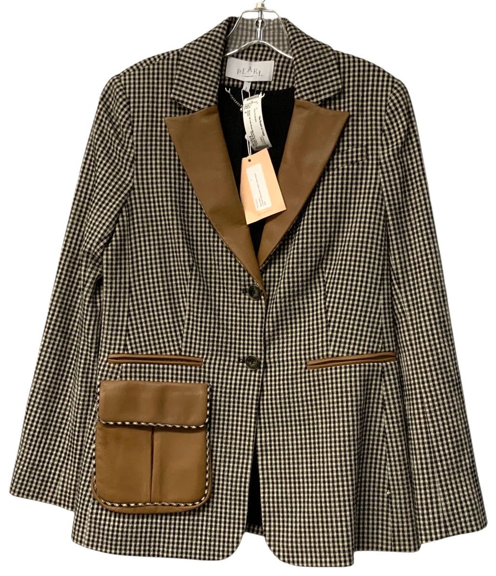 PEARL by Lela Rose Black/Tan Check w/Tan Lea Trim Blazer