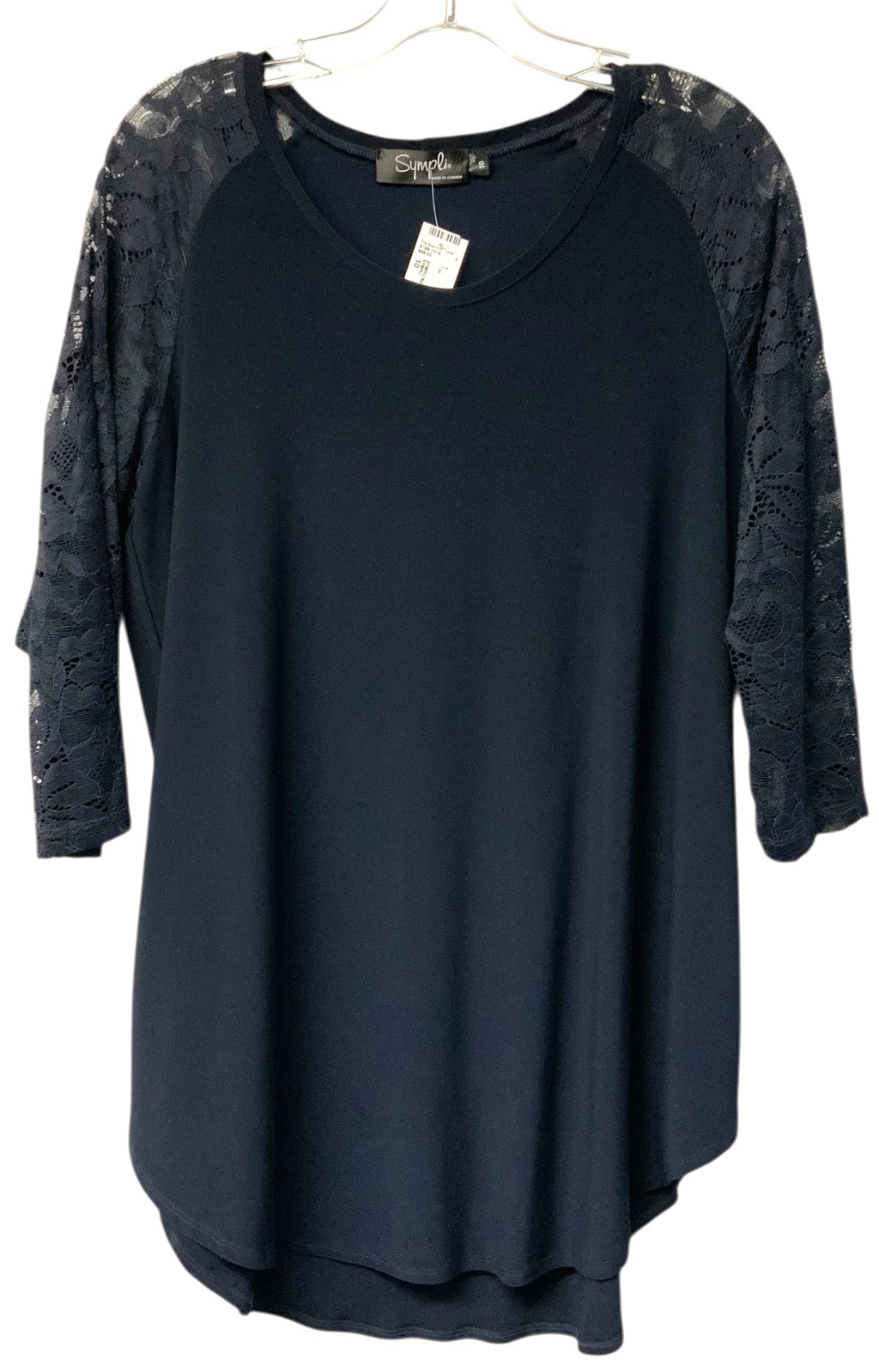 SYMPLI Navy w/Lace Sleeves Knit Tunic