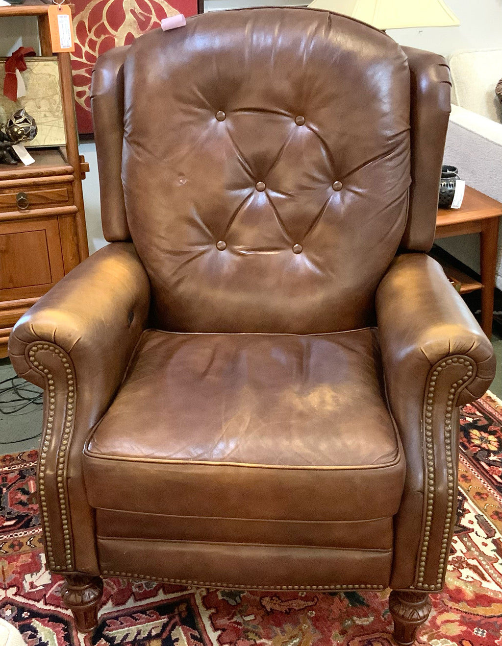 Power Recliner, Leather, Nailhead Trim, One Button Missing On Front, 34"wx34"dx40"h; 19.5" Seat Height