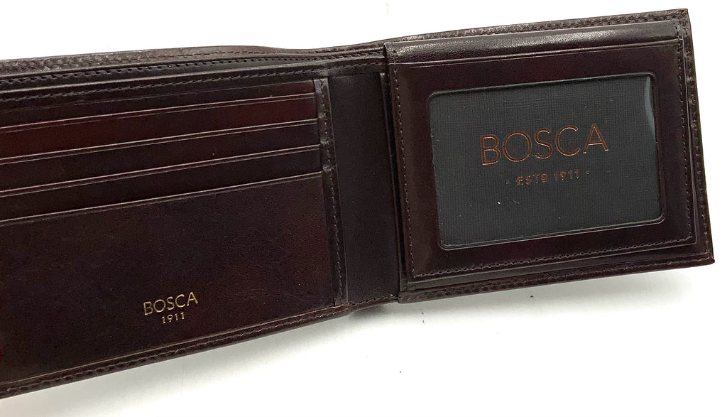 BOSCA Brown Leather "Old Leather Executive ID" Bifold Wallet, Boxed