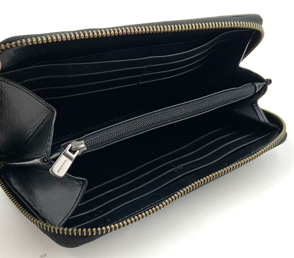 COACH x Gary Baseman Black Pebbled Leather "Buddy Boy" Character Continental Wallet, 2015-2017. The leather shows signs of wear and relaxing.