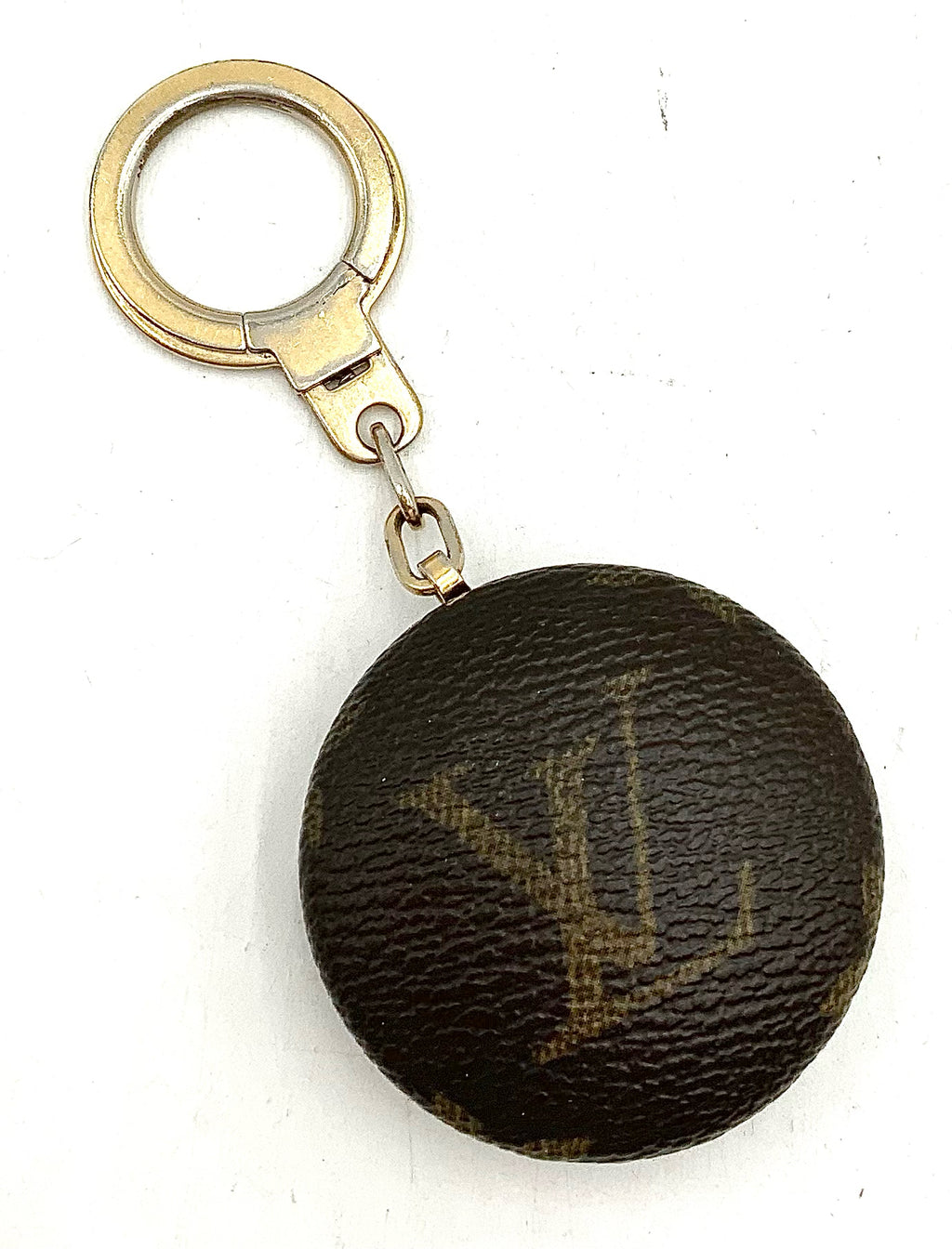 LOUIS VUITTON Vintage Monogram Canvas Round Astrpoil Bag Charm/Keychain.AS IS-hardwear shows discloration/scratching and small rip in bottom.