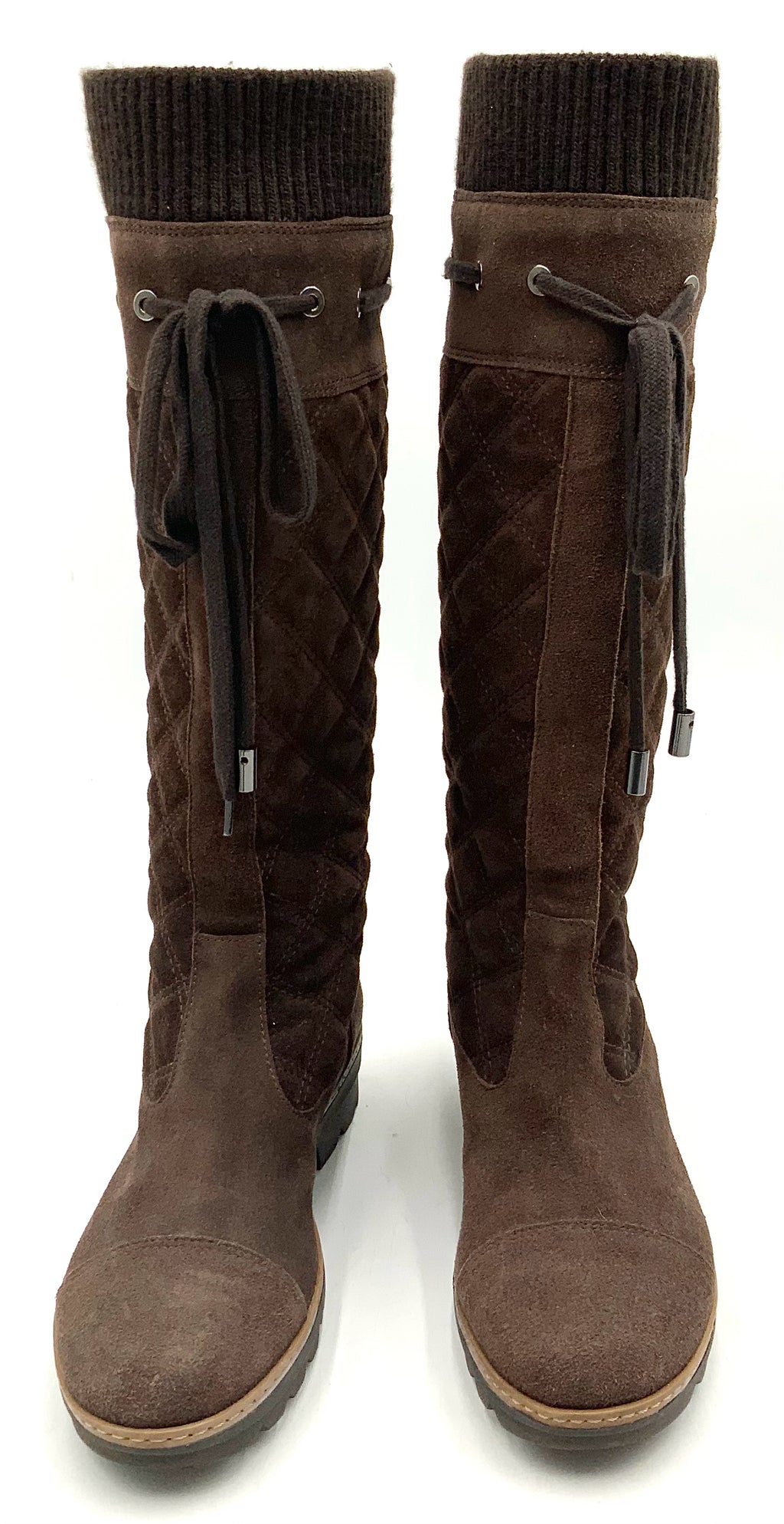 AQUATALIA Brown Quilted Suede Knit Knee High Boots 5.5