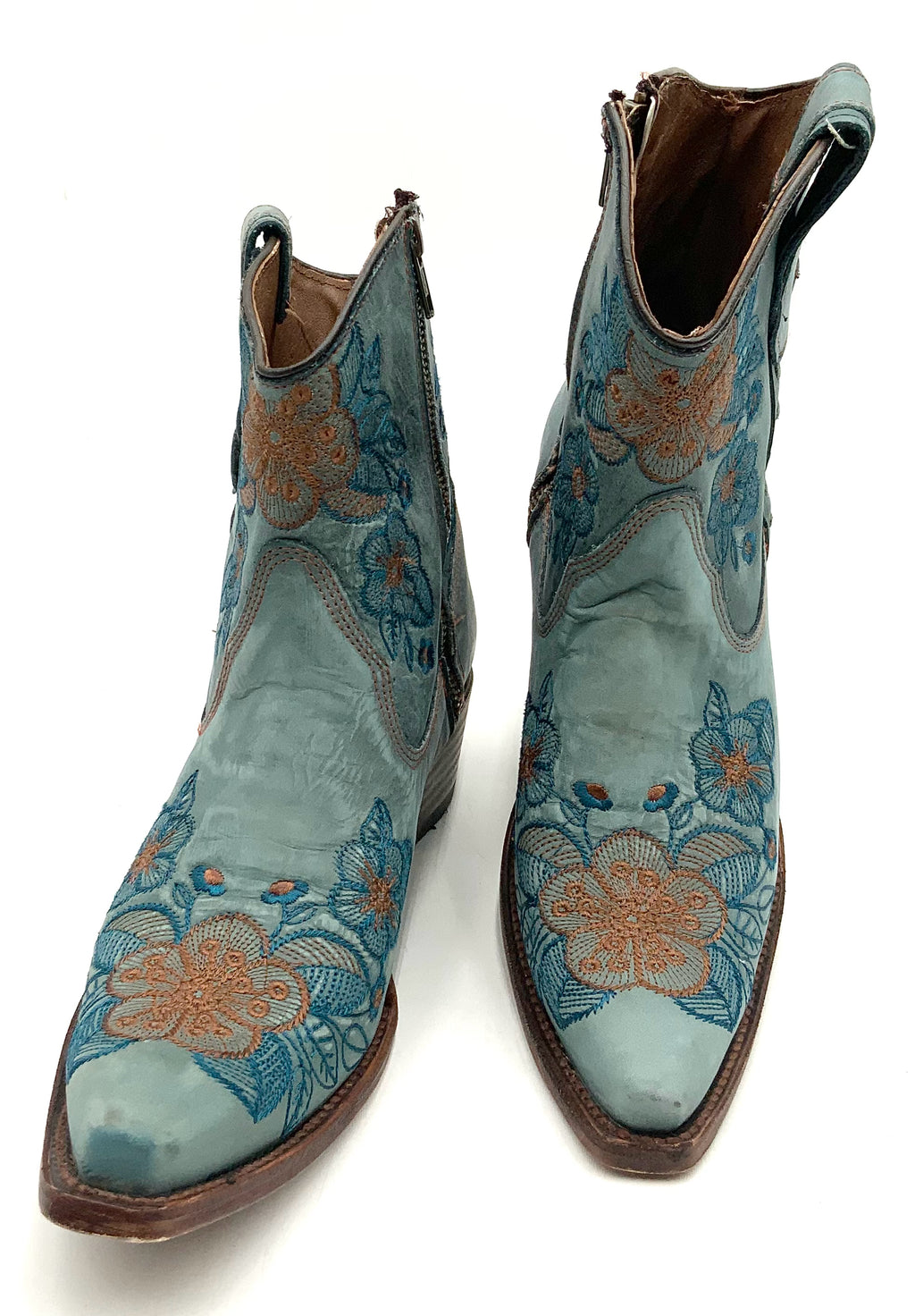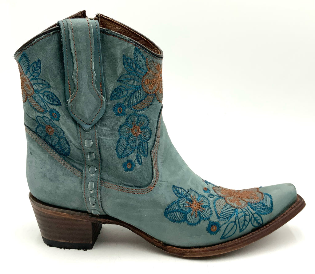 CIRCLE G Blue Suede Rust Teal Embroidered Snip Toe Ankle Western Boots 10
