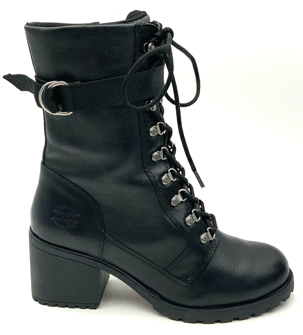 HARLEY DAVIDSON Black Leather Marinda 9" Lace Up Boots 9.5