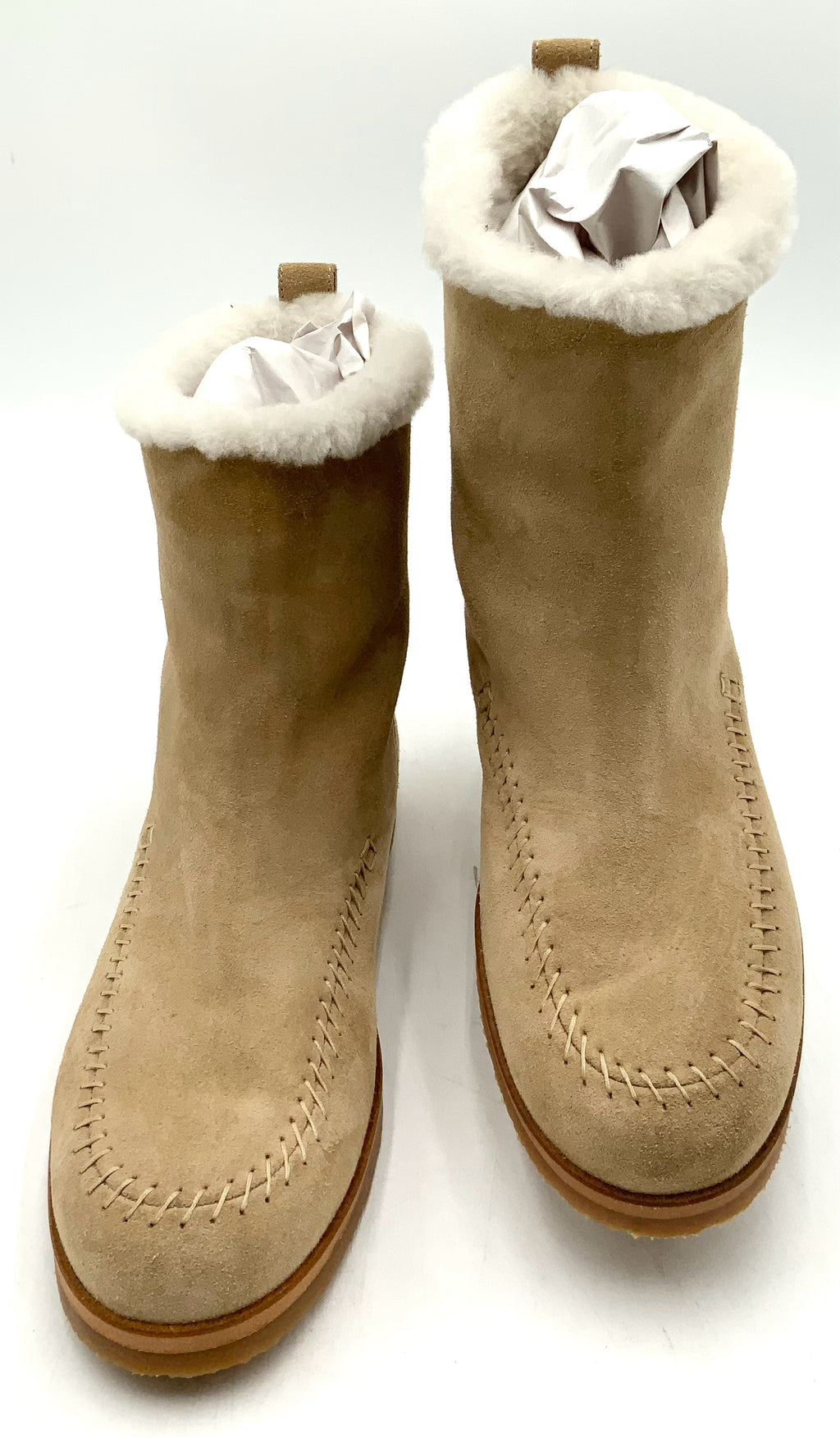 M. GEMI Tan Suede Shearling Lined Calor Moccasin Ankle Boots 40.5