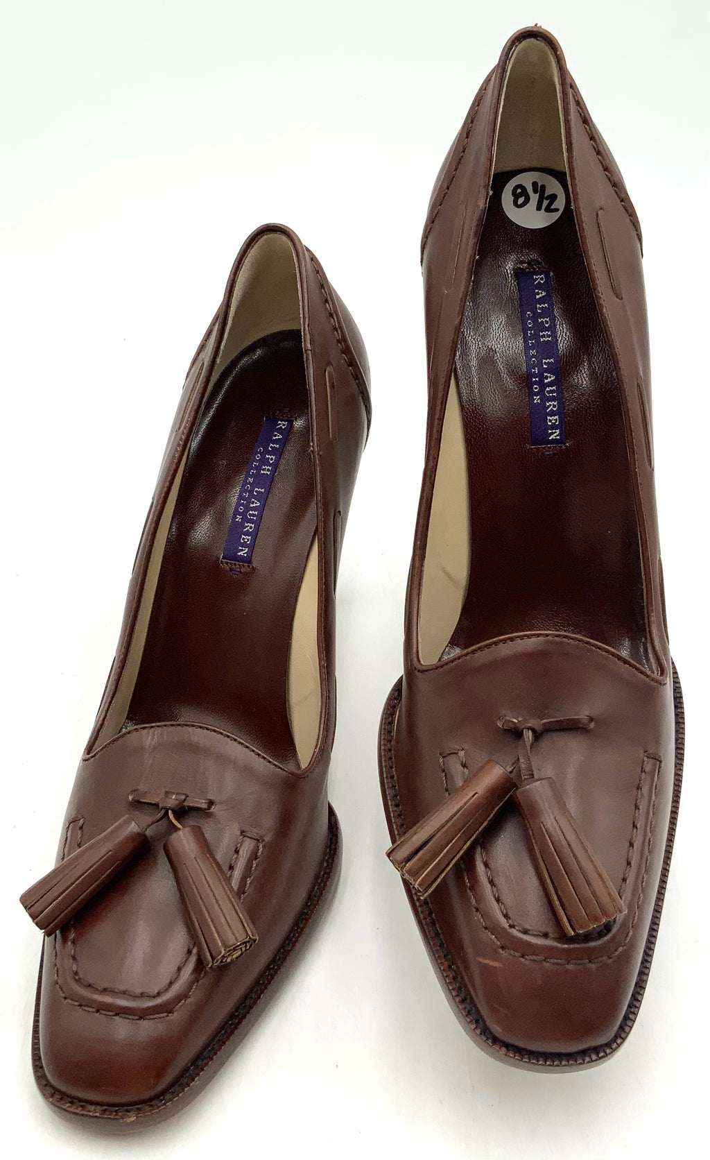 RALPH LAUREN Brown Leather Tassel H/H Pumps 8.5