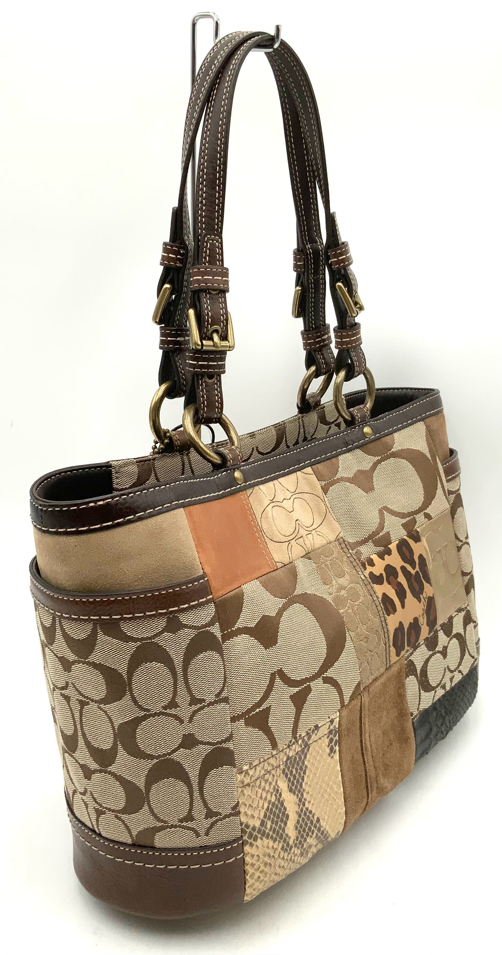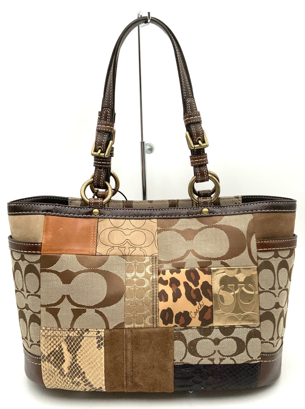 COACH Vintage Brown Multi Signature Leather & Suede Patchwork Gallery Tote