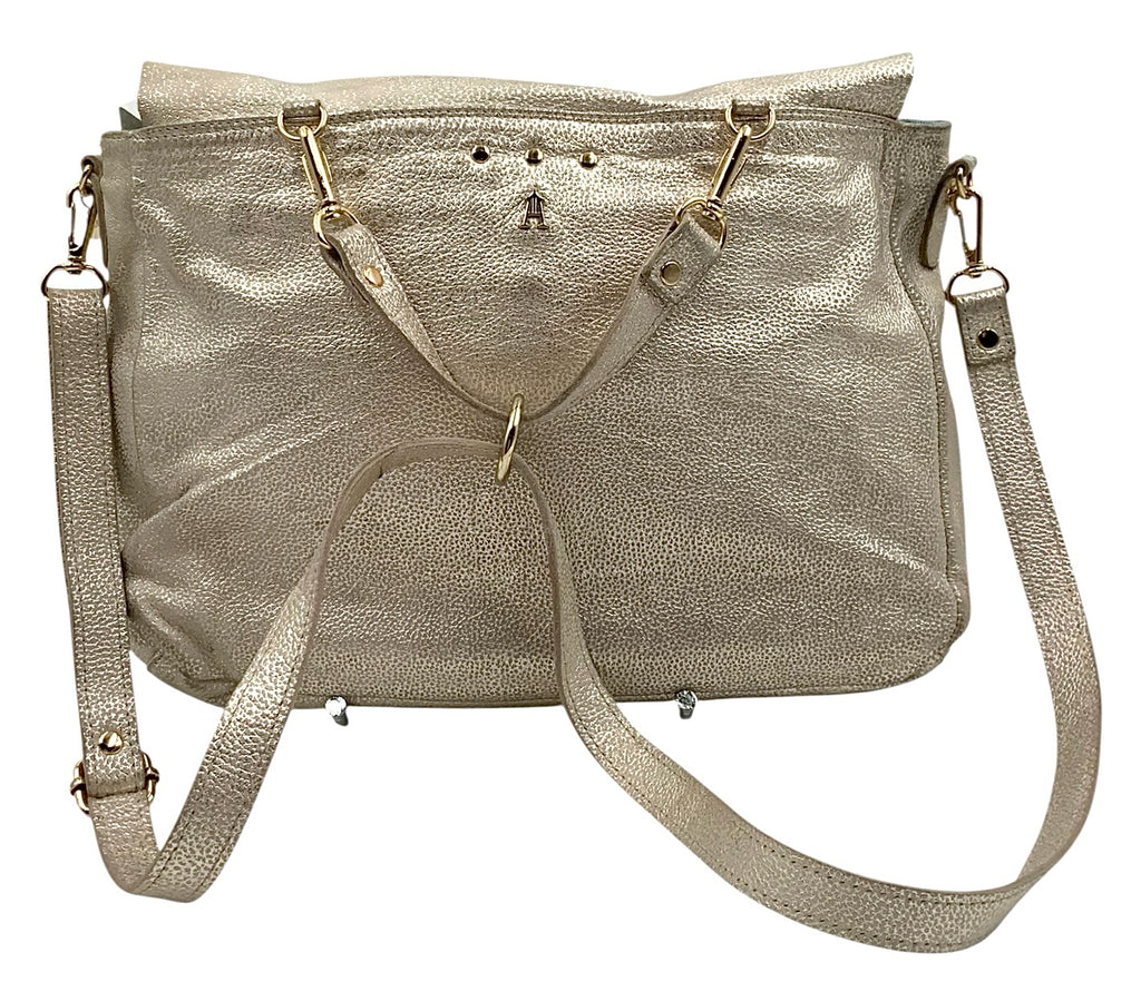 CRAIE STUDIO Goldwash Pebbled Leather Double Pocket Maths Satchel. Converts to a backpack. AS IS-Interior shoes pen marks and minor wear.
